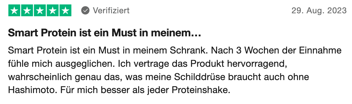 Der Test hat sich gelohnt. Ich fühle mich endlich verstanden und von Produkten unterstützt, die sichtbar auf die Bedürfnisse von uns Hashimoto-Betroffenen zugeschnitten sind.